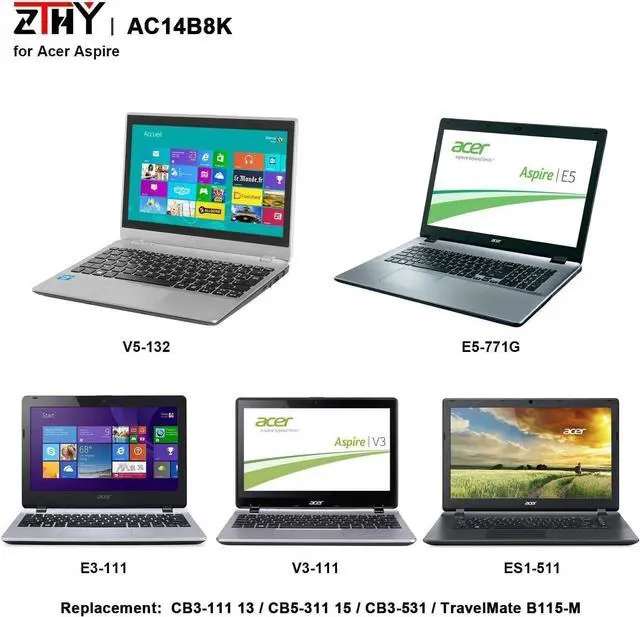 Compatible Models Acer Chromebook 13 15 C810 C910 CB3-531 CB5-571 Series, Acer Aspire ES1-572 ES1-711 ES1-711G E5-721 E5-731 E5-731G E5-771 E5-771G R3-131T R3-471TG R5-471T R5-571T R7-371T A515-41G A515-51G A515-52 A515-52G A517-51 A517-51G A517-51GP A517-51P A615-51 A615-51G A715-71G A715-72G A717-71G A717-72G Series, Acer Extensa 2540 Series, Acer Nitro 5 AN515-51 AN515-52 AN515-53 NP515-51 Series, Acer Swift 3 SF314-51 SF314-52 SF314-52G SF314-53 SF314-53G SF314-54 SF314-54G SF315-41 Series.