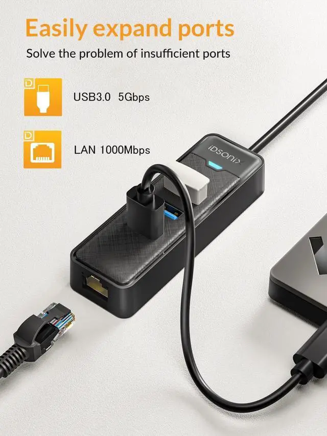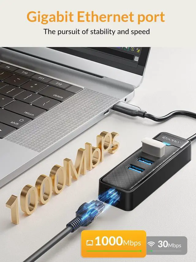 Plug and Play No need to install drivers, support hot swap. Plug and play 3USB 3.0 5Gbps port, Gigabit Ethernet port speed, providing a smooth network environment for users who do not have Ethernet ports on MacBooks and laptops