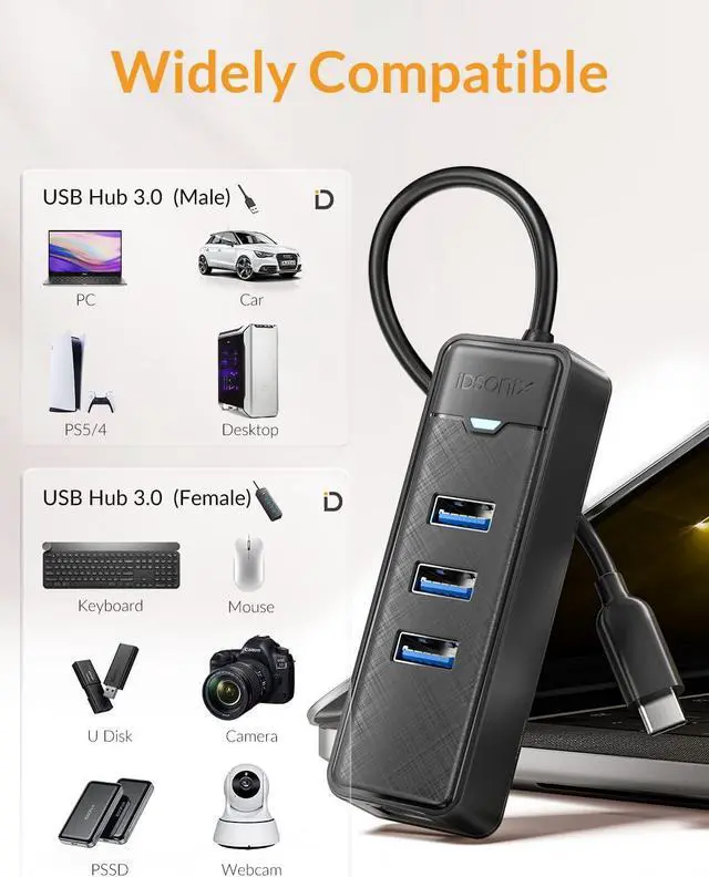 5Gbps Data Transfer The extra 3 USB 3.0 ports of the USB c hub can work smoothly at up to 5Gbps transfer speed (about 10 times faster than traditional USB 2.0 ). Can connect flash drives, hard drives, keyboards, mice, printers, etc., allowing you to avoid the hassle of plugging and unplugging and improving work efficiency.