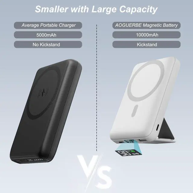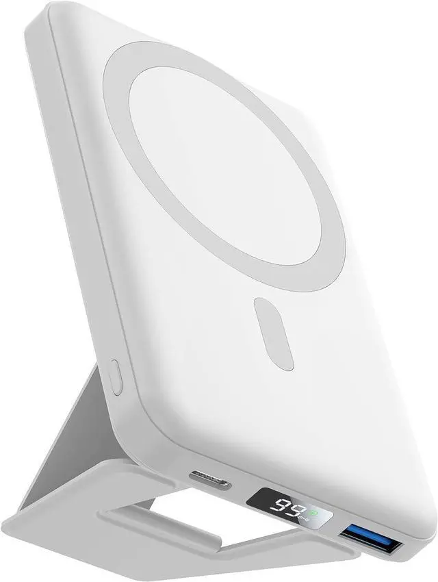 [Foldable Stand & Compact Design]: The wireless magnetic power bank built-in bracket, keeps your iPhone 15/14/13/12 on it vertical or horizontal for a comfortable viewing angle. Mag-Safe iPhone charger is lightweight and portable, only 0.41 lb, 4.09 * 2.68 * 0.86 inch allows you to take it with you anywhere and to charge a breeze anytime anywhere.