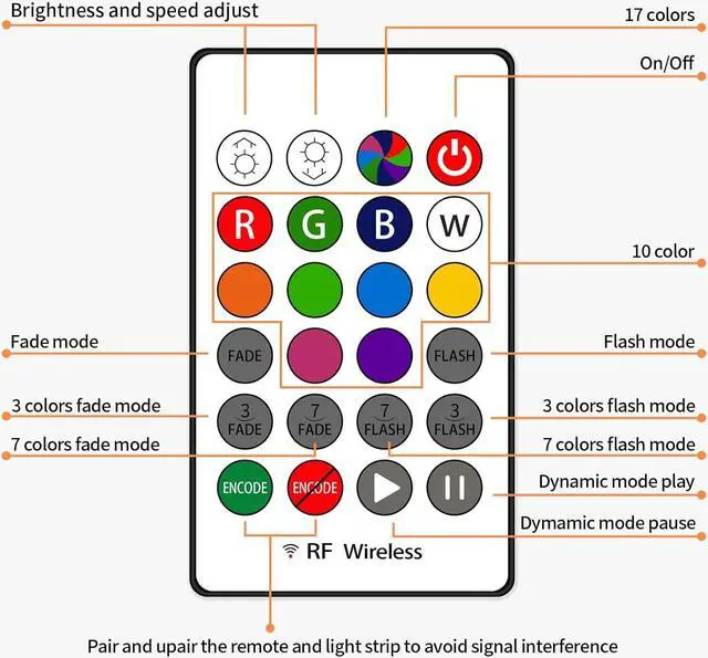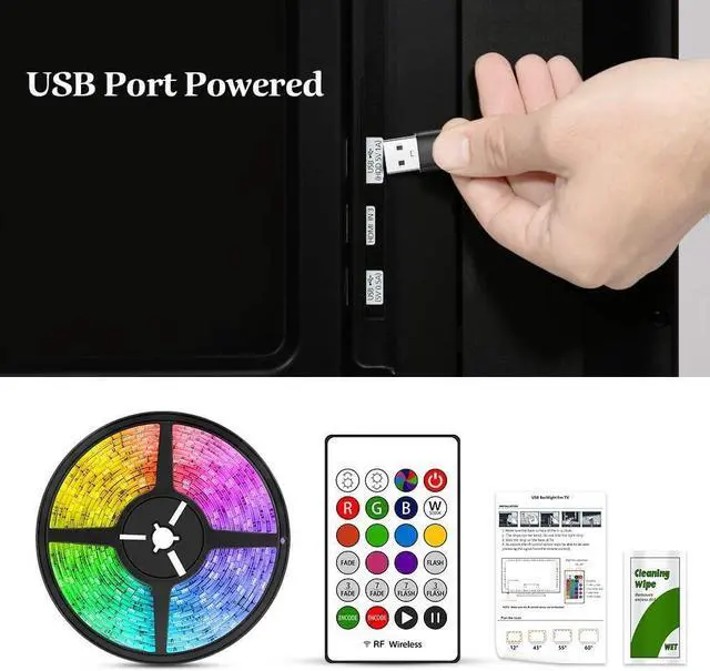 DIY RGB/Multi-ColorsLED TV bias lighting, comes with upgrade RF 24-key Remote, provides 18 colors, 6 dynamic modes and brightness adjustments, which can create wonderful viewing experience. TV LED Backlight has an excellent memory function that can maintains your last colors and settings.