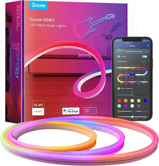 Unique RGBIC Technology: Govee RGBIC technology lets your creativity run wild. Display multiple colors of light simultaneously in a bendable neon rope light. Decorate your home with flowing lighting effects based on nature, halloween and moods.