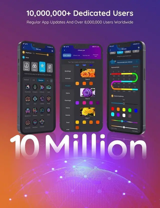 Rich Animated Effects: 64 preset scene modes, 11 music modes, group control with other Govee smart lights. The surface is sprayed with dust-proof paint that is not easy to get dirty. Easily apply it to wall decor with the included 20 clips and 20 screws.