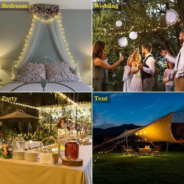 [Waterproof IP44]: The wires of and bulbs of these sparkling lights are completely sealed, making it submersible. This string of globe lights can withstand all kinds of weather all year round