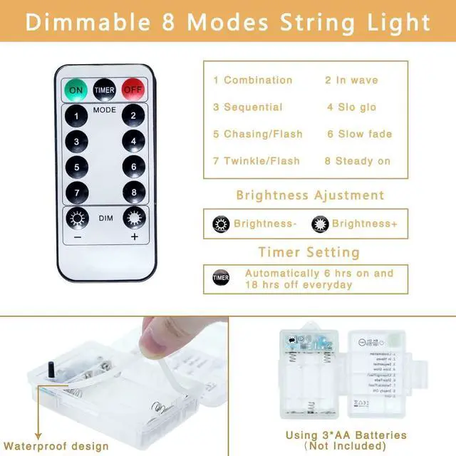[Battery Power]: Powered by AA batteries (not included). You can move Battery Operated LED Lights wherever you need them. The battery box is sturdy and easy to decorate without cables.
