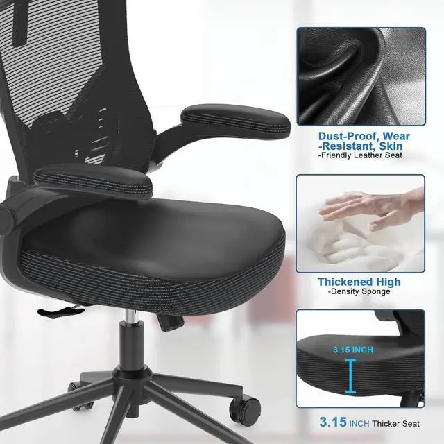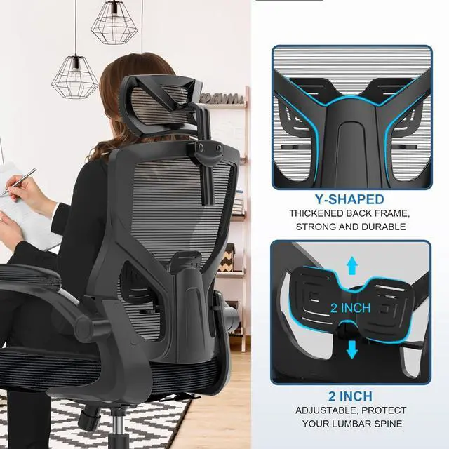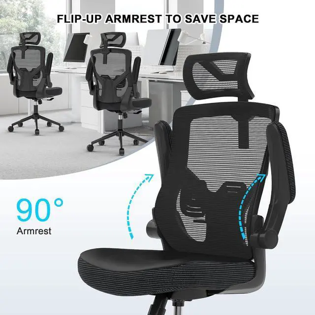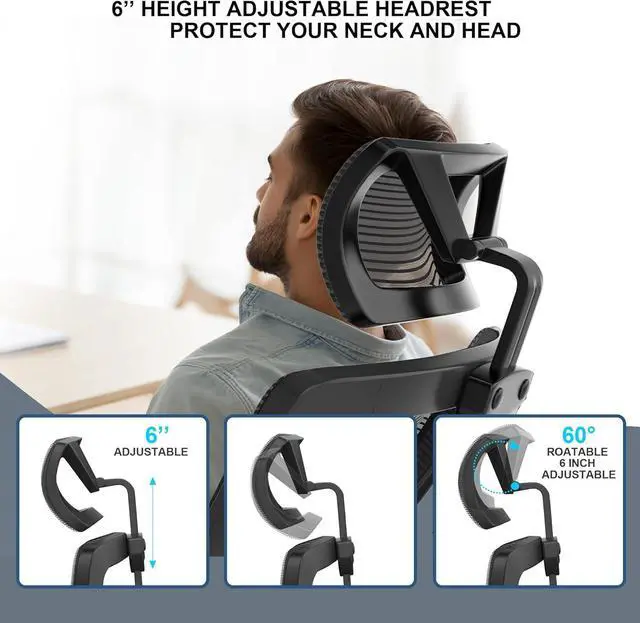 Adjustable features - CYKOV ergonomic office computer chair has adjustable features such as 4'' height, 90°-135° tilt, and reclining, and 6 headrest adjustment, 90° flip-up armrest allowing you to customize the home office desk chair to your preferences and needs.
