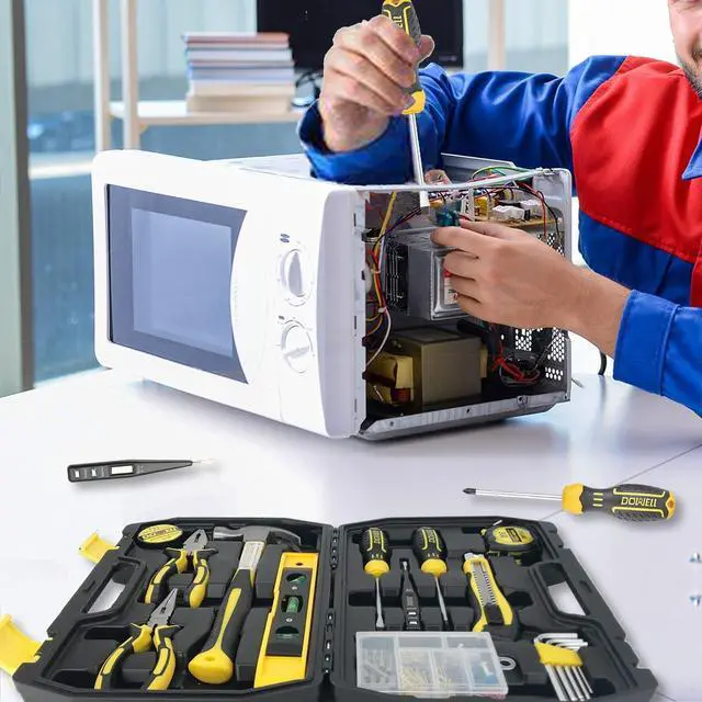 MULTIFUNCTION: This household tool kit contains tools for small repairs and basic DIY projects like picture hanging, furniture assembling, lighting, screw tightening, woodwork, around the house, office, garage, workshop, body shops.