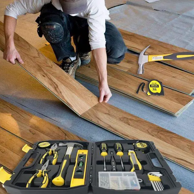 COMPLETE VARIETIES: A combination of a variety of basic tools, screwdrivers, hammer, measuring tape, pliers, hex key set, level, utility knife, assorted screws kit, insulation tape, voltage tester pen. Limited tools with unlimited functionality.