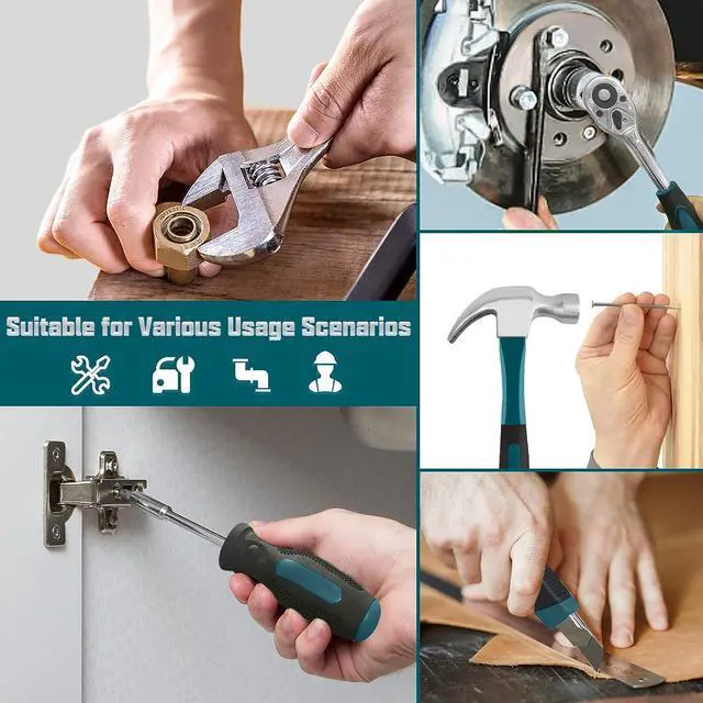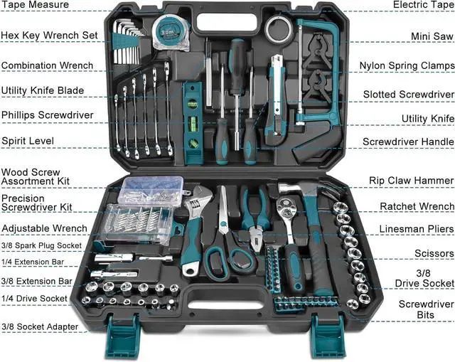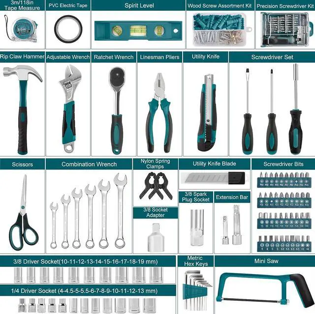[Application Scope]The repair tool kit is a good choice for family, friends and partners. The tools in the tools kit mainly include: Wrench Set, Metric Socket Set, Screwdriver Set, Screw kit, Pliers, Centimeters and Inches Measuring Tape, etc. Perfect for Homeowners, DIY, Repairers, Mechanics, Auto Repairers, etc.