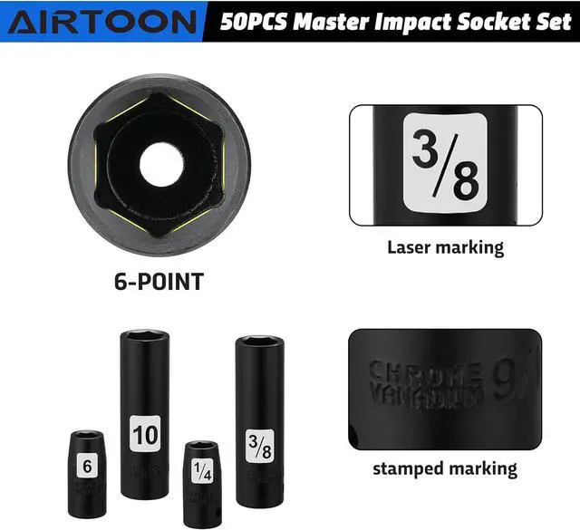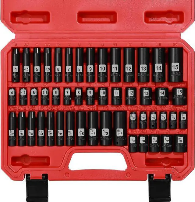 The high-contrast and visible laser-etched markings on this socket set allow for easy to read, a durable storage case provides storage and access.