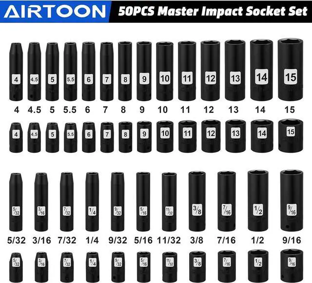 This complete shallow & deep impact socket set contains: 1/4"Dr