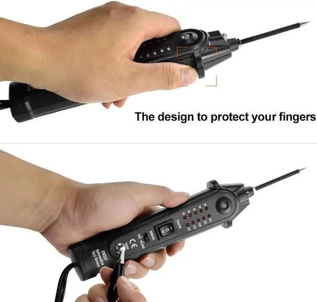 INSUFFINIENT LIGHT ENVIRONMENTCar Circuit Tester, takes the insufficient light environment in consider, the tool built in flashlight to indicate the DC voltage measurement.
