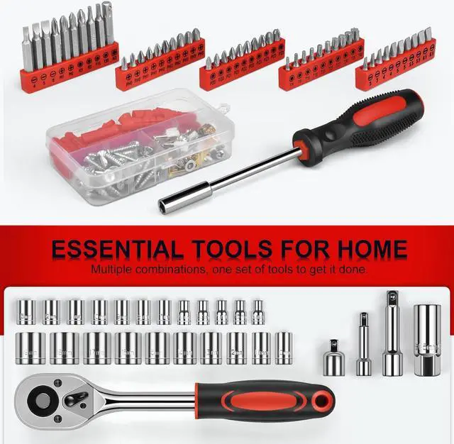 Multifunctional Tool Kit This home tool set is widely used indoors and outdoors. It is an ideal choice for tackling most small repairs and DIY projects around the house, such as furniture assembly, home decoration, plumbing repair, car repair, garage construction, garden decoration, and many more.