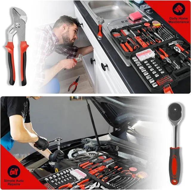 Premium Material The metal parts of the home tool kit are made of high-temperature forged steel, making them lightweight and high hardness. The handle is wrapped with non-slip material, making it comfortable to grip and easy to use.