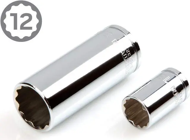 12-point opening fits double hex (12-sided), hex, and square-shaped fasteners