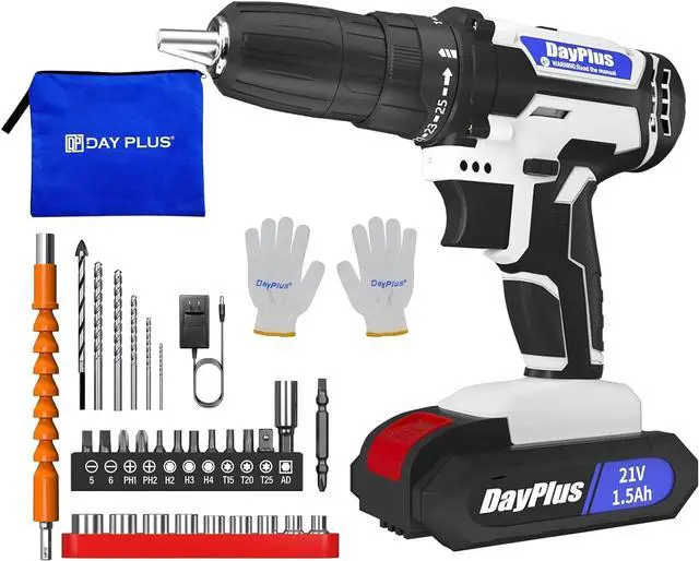 Cordless Drill Driver Set includes: 1*21V Cordless Drill Driver, 29*Driver Bits Accessories, 1*1500mAh Lithium Batteries, 1* Charger, 1*instructions, 1* Carrying Bag. This portable bag is easy to carry allowing you to take your tools to work, around the house or outdoors24-Hour Customer Service, if you have any question, please feel free to contact us.