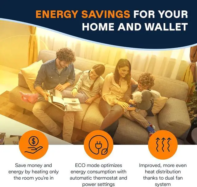 Long lasting, Improved Heat Distribution - This unit is upgraded with a dual lateral fan system to improve heat distribution and move air more evenly throughout the room warming you up faster.