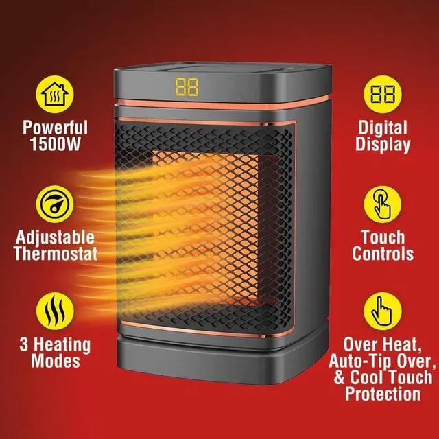 Office & More: With 3 heat settings - low, medium, and high and an adjustable digital thermostat, set this 1500W ceramic heater at your desired temperature to keep your room warm and toasty