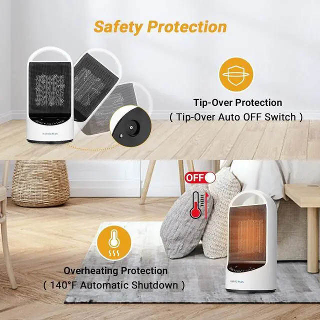 FAST HEATINGThe powerful 1500 watt PTC ceramic space room heater with thermostat helps you quickly heat up your bedroom, living room, and office.