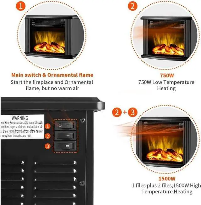 Adjustable temperature for year-round use - the fireplace can be set to high (1500W), low (750W) or run without heating. This excellent perennial heater can be comfortably heated to 200 square feet, making it ideal for use in any room at any season!