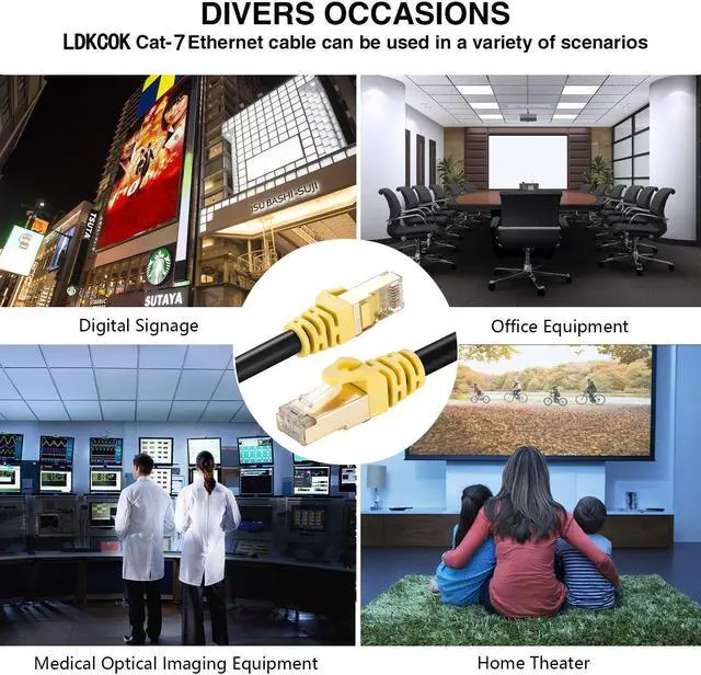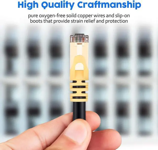 Gold plated connector shielding, Gold Plated 8P8C contacts. Backward compatible with traditional CAT5 and CAT6 Ethernet networks.