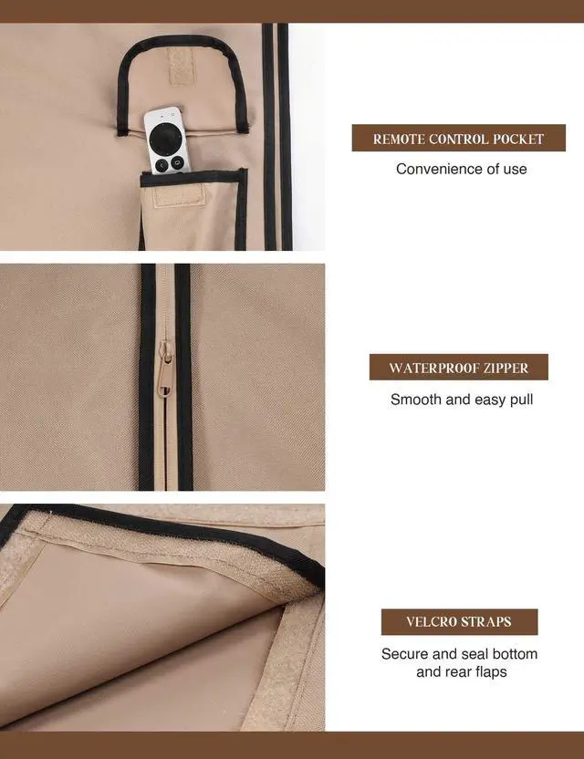 EASY TO USE: The convenient waterproof zipper provides quick installation and removal, so you don't have to take off the entire cover when you want to use your TV. The pocket behind the TV cover makes it easy to store your remote control, so you can easily access it