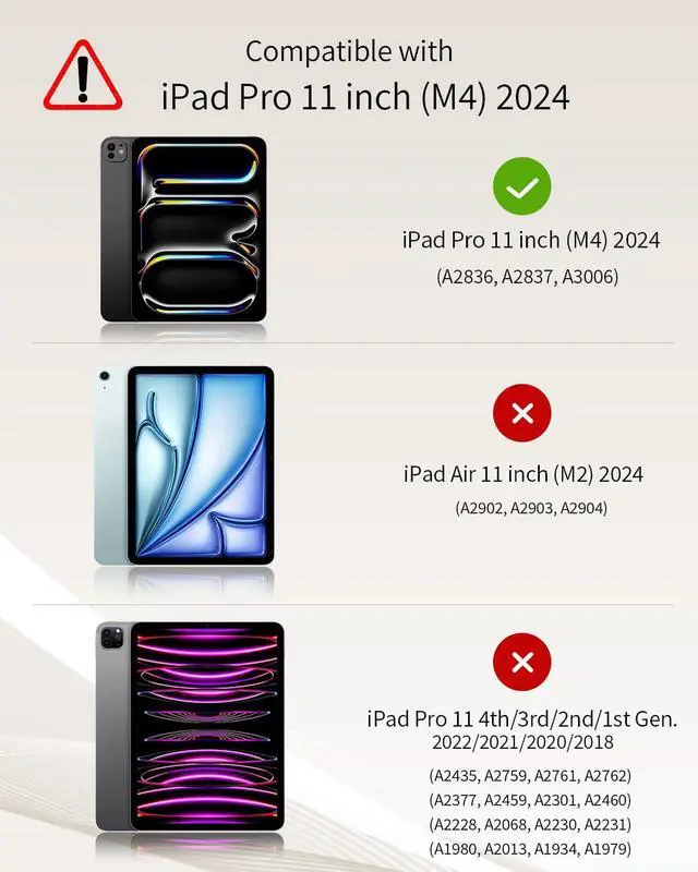 • Compatibility: This case with keyboard is compatible with iPad Pro 11 Inch M4 2024 (A2836/A2837/A3006). Please check the model name of your tablet before ordering