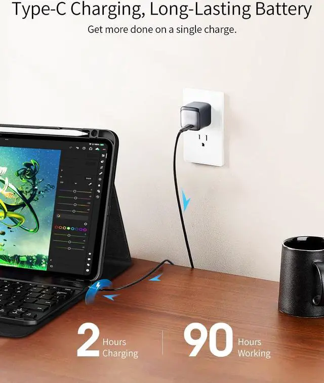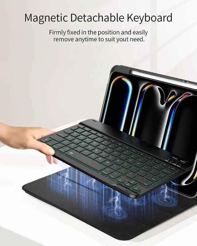 • 7-color Backlight: The iPad Pro 11 M4 keyboard comes with power-saving mode. If not used for a long time, it will enter hibernation state. 3 levels of brightness and 7 vibrant colors make typing fun and easy, whether in the dark or in bright environments