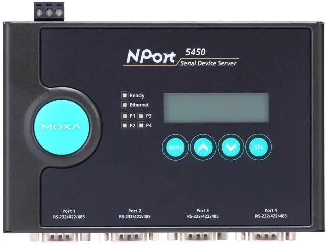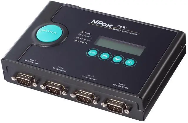 MOXA NPort 5450 w/Adapter - 4 Ports Device Server, 10/100 Ethernet, RS-232/422/485, DB-9, 15KV ESD, 110V Adapter Included