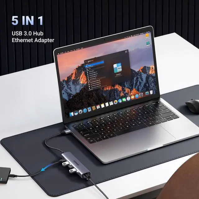 5 in 1 USB 3.0 Ethernet Hub: UGREEN USB 3.0 to Ethernet Adapter is equipped with a gigabit ethernet port and 3 x USB 3.0 ports. While providing your device with a stable wired network, it's possible to expand more accessories, too. It's also equipped with a type C power supply port for you to use some high-power devices.