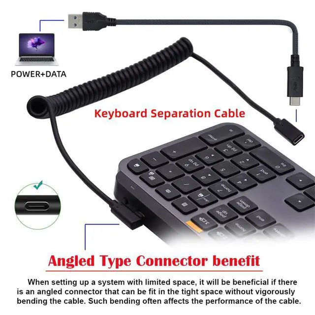 Angle & Coiled Cable, Professional reversed Coil, more substantial, prevents damage to the coil caused by overstretching, and provides the perfect length for connecting a keyboard without having a tangled cable mess.
