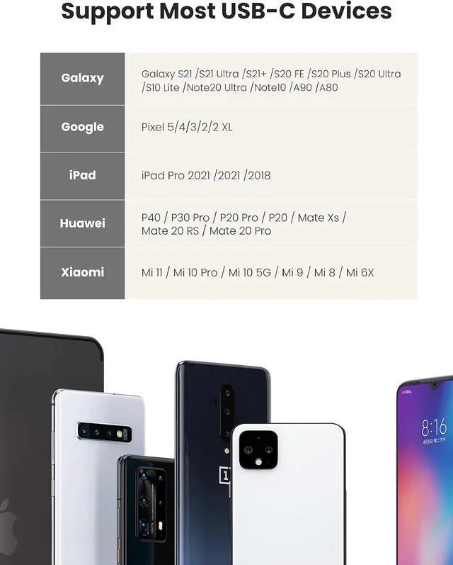 Wider Fit: With a high-end DAC chip, the USB C to 3.5 mm Audio Cable supports most Type-C/Thunderbolt 3 devices, like Samsung Galaxy S21 Ultra/S21+/S21/S20 FE/S20 Plus/S20 Ultra/S10 Lite/Note10+/Note20 Ultra/A90/A80/Z Flip/Galaxy Fold/Tab S6 S5e S7+, iPad mini 6, iPad Air 4, 12.9 /11 iPad Pro 2021/2020/2018, Google Pixel 5/4/3 XL, Xiaomi Mi 11/10, Sony Xperia 1/5/XZ3/XZ2 Compact, OnePlus 9 Pro/8/7T/7 Pro/Nord, PS5. The USB C to Aux DAC Cable is perfect for devices with no 3.5 mm jack