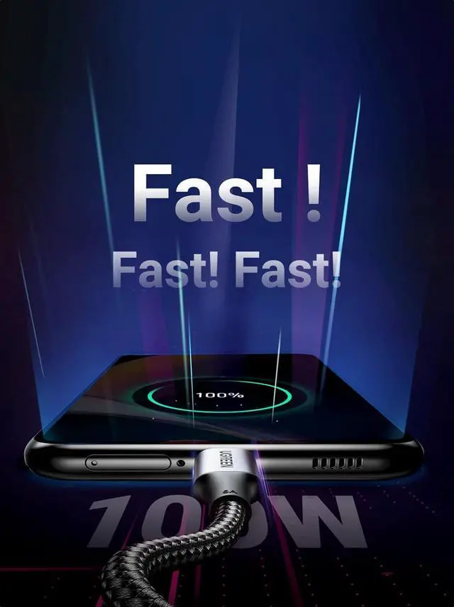 Save Time with 100W Charging: 100W PD technology takes charging speed to the next level. Our Type C fast charging cable supports PD 3.0 and QC 3.0 fast charging with a max 100W (20V 5A) output. Quickly charge your MacBook Pro to 55% in just 35 minutes.