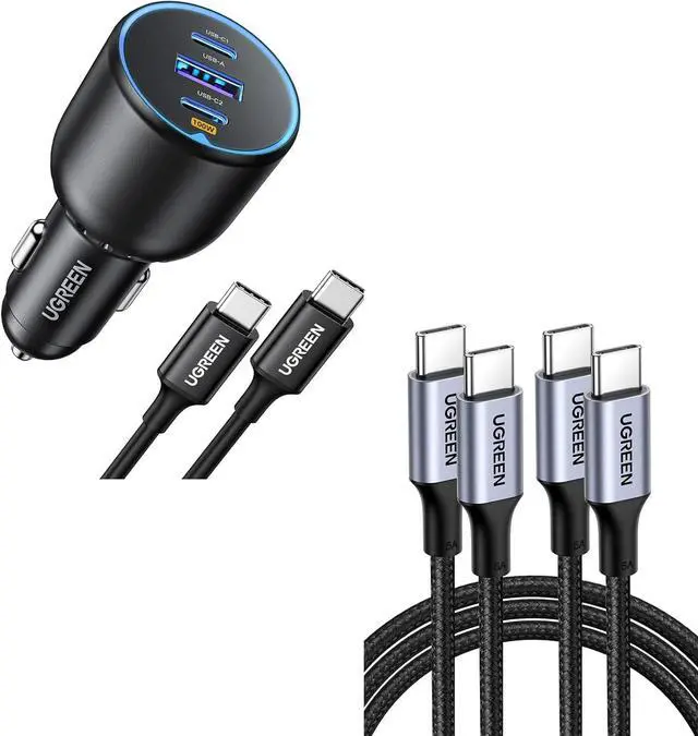 Three Port Fast Charging Equipped with one USB A port and two type-c ports, the UGREEN 130W USB C car charger charges 3 devices simultaneously. The dual PD Car Charger has 3 ports for high-speed charging your devices. Supports PD 3.0, QC 4.0, and many other fast charging protocols. The fast charge car adapter charges an iPhone 13 to 100% in about 1.5 hours, an iPad Pro/Air in around 2 hours, or a MacBook Pro in less than 2 Hours.