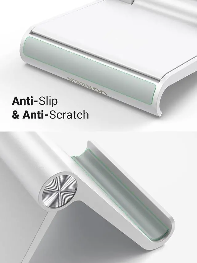 Foldable and Portable: With small size of 3.74" x 3.35", UGREEN desk phone stand folds flat to a compact size for storage or travel. A perfect companion for home, office, and travel.
