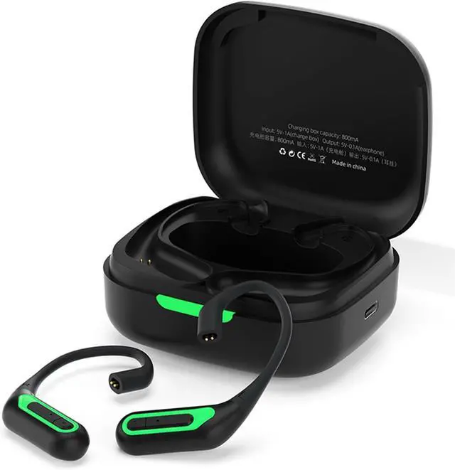 1. Parameter:Bluetooth version:5.2,Charging port:TYPC-C,Transmission distance:about 15 meters,Earhooks battery life:about 6 hours,Earhooks battery capacity:50mAh,Charging case battery capacity:800mAh,Charges in the charging case:about 9 times