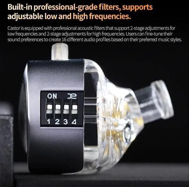 Built-in professional-grade filters: supports adjustable low and high frequencies.Castor is equipped with professional acoustic filters that support 2-stage adjustments for low frequencies and 2-stage adjustments for high frequencies. Users can fine-tune their sound preferences to create 16 different audio profiles based on their preferred music styles