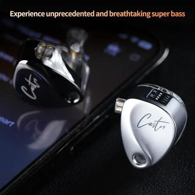 • nnovative Stacked Dual-Dynamic Drivers Structure DesignCastor features a unique design with two stacked dynamic drivers. One driver is dedicated to producing frequencies around 20-200Hzfor bass output, while the other diver handles mid and high frequencies. Through precise electronic crossover technology, these two divers work synergistically without interference between their frequencies. This enables Castor to deliver powerful and energetic bass as well as stunning mid and high frequencies