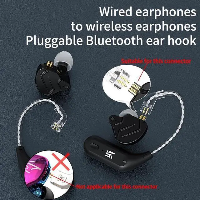 Features:Wired earphones to wireless earphones Pluggable Bluetooth ear hook The plug-in design with gold-plated pins makes the earphones become wireless earphones in seconds getting rid of the shackles of cables. You can choose the hybrid technology/dynamic/balanced armature earphones and discover more interesting upgrades. 0.75/0.78mm Pin earphones on the market can be used