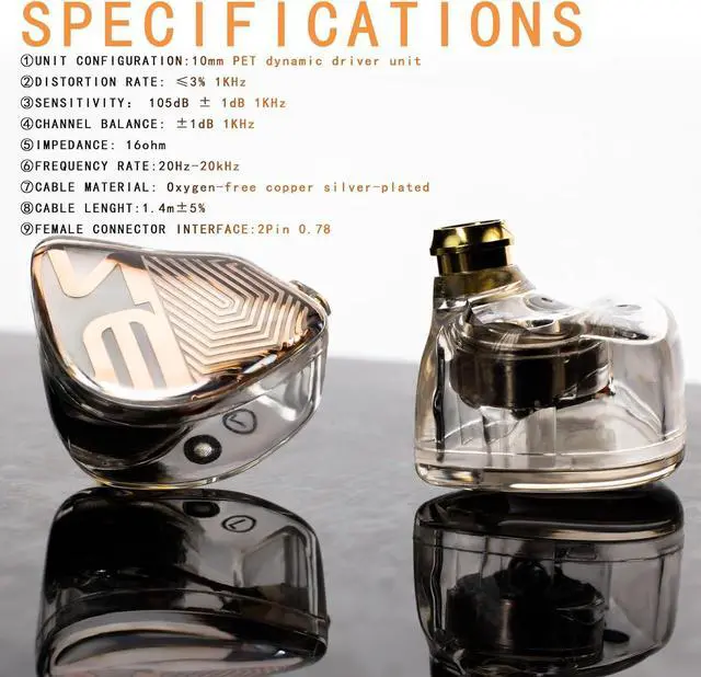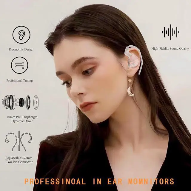 Ergonomic Design:10mm PET Diaphragm Dynamic Driver Professional Tuning High-Fidelity Sound Quality Imported PC Material Housing Interchangeable 0.78mm 2-Pin Connector