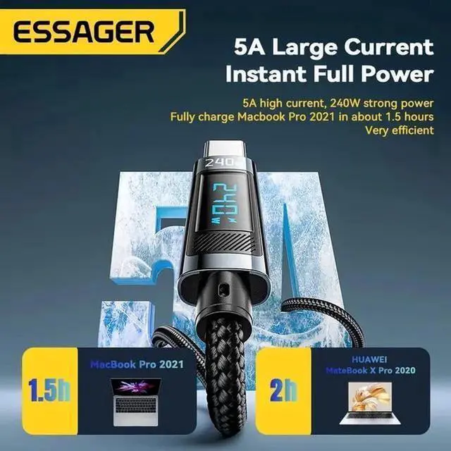 [240W USB-C to USB-C Cable]:240W type C to type C cable can charge your device at the fastest speed. It can fully charge a Switch 90%, a Samsung S20 96%, a MacBook Pro 86% and an iPad Pro 89% in 35 minutes.No more idling while a battery charges slowly. NOTE: Please be aware that a C port adapter with the appropriate power is required.