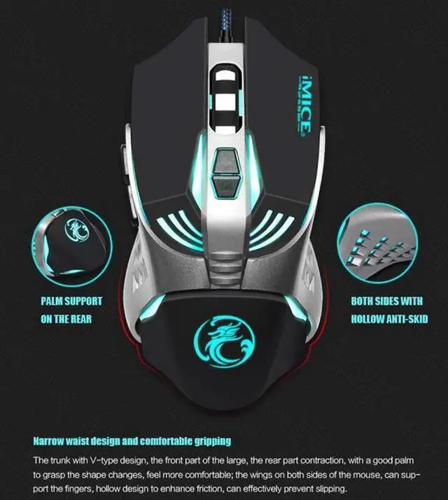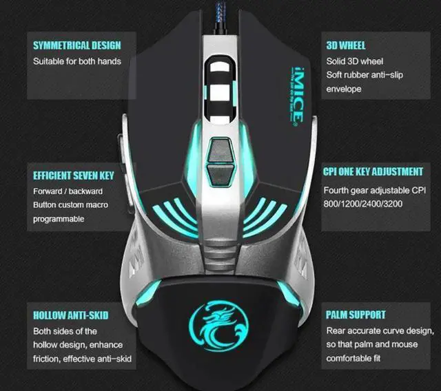 iMice Wired Gaming Mouse 7 Button 3200 DPI LED Optical USB Computer Mouse Gamer Mice V5