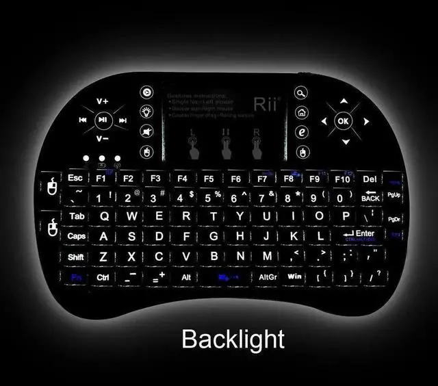 Rii i8+ Wireless Mini Keyboard Mouse backlite Touchpad for PC Smart TV (Black)