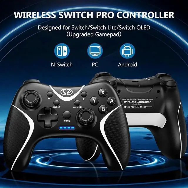 Wireless Switch Pro Controller,Nintendo Switch Controller with Programmable/Vibration/Turbo Compatibility with Nintendo Switch/Lite/OLED/Windows PC,Switch Remote Gamepad with 2 Thumb Caps - Black