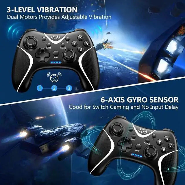 The non-slip design of switch controller that allows you to control the game stably . The wireless switch controller with adjustable 3-speed turbo speed and auto fire function, it has fast shooting game turbo speed. A/B/X/Y/L/ZL/R/ZR all buttons can be set to TURBO, which make it easier to win an arcade or action game.