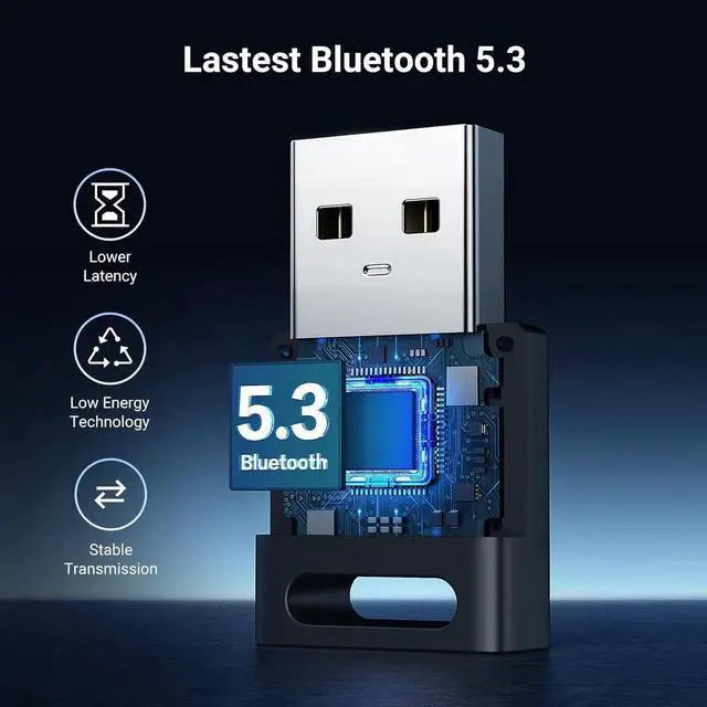 Upgraded Bluetooth 5.3 Adapter: This bluetooth adapter for pc uses the latest upgraded Bluetooth 5.3 BR+EDR technology, greatly improves the stability of the connection data transfer speed, reduces the possibility of signal interruption and power consumption.
