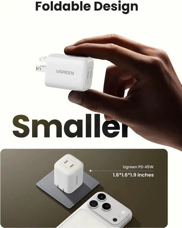 UGREEN 45W USB C Charger, Nexode 2 Port GaN Foldable PPS Wall Charger Block Support Samsung Super Fast Charging 2.0 for Galaxy S25/S24/Note 20, iPhone 16/15/14, iPad, MacBook, Steam Deck (White)