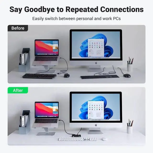 Wide Compatibility & Driver-free: UGREEN USB 3.0 Switch selector is plug-and-play for Windows, macOS, Chrome OS, and Linux computers. Just plug in and enjoy efficient work. (If the input PC only has a USB C port, please use a USB C to A adapter instead of a USB C to A cable, directly using the cable may not work.)