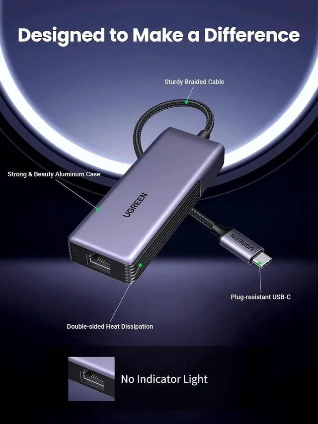 Multi Functional: UGREEN ethernet adapter for laptop supports ACPI and LPM power management, EEE high-performance ethernet (IEEE 802.3az), Wake-on-LAN, Wake-on-WAN, Auto MDI/MDIX