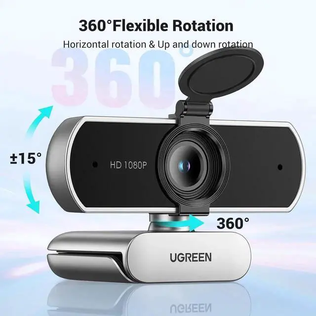 Built-in 2 Noise-Cancelling Microphones: UGREEN webcam for PC comes with built-in dual microphones that can pick up sound from up to 10ft. The computer camera features 2D digital noise reduction, which filters out environmental noise to ensure clear audio during video calls or recordings, making every call more natural and clear
